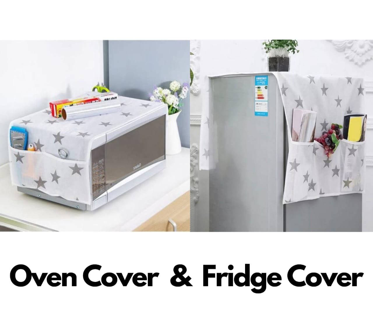 2 Pcs Set Oven Cover and Fridge Cover Kitchen Microwave cover Waterproof Oil Dust Double Pockets Microwave cover Oven Cover and fridge cover