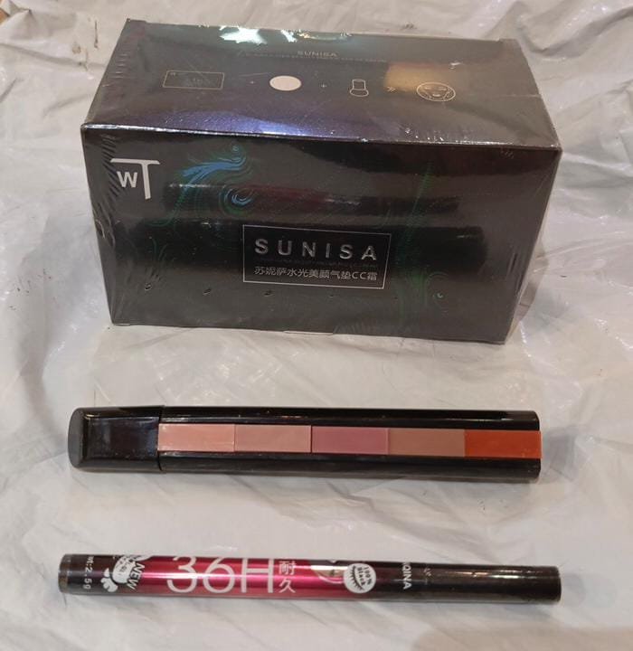 Be the first to review “3 in 1 Makeup Deal Sunisa Foundation Base 20g Waterproof Mushroom Head Air Cushion BB Cream Nude Liquid Foundations +yanqina 36H liner + 5 in 1 lipstick Pen (Random Shades)”