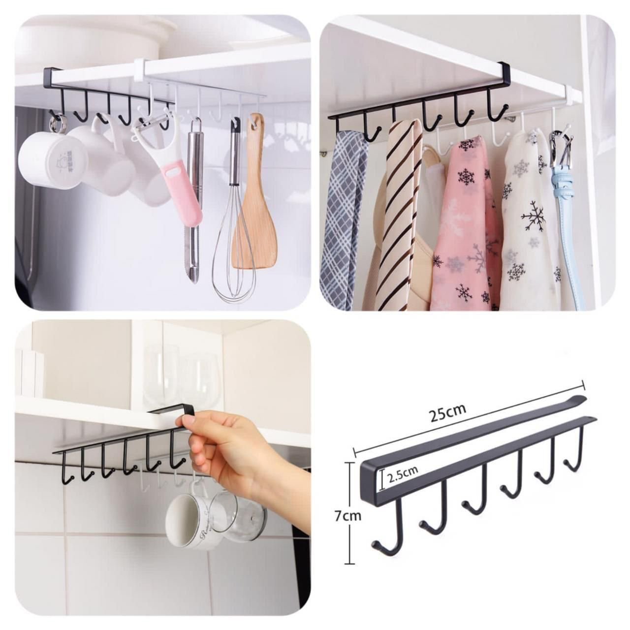 6-Hook Under-the-Shelf Mug Rack Kitchen Hanging Organizer