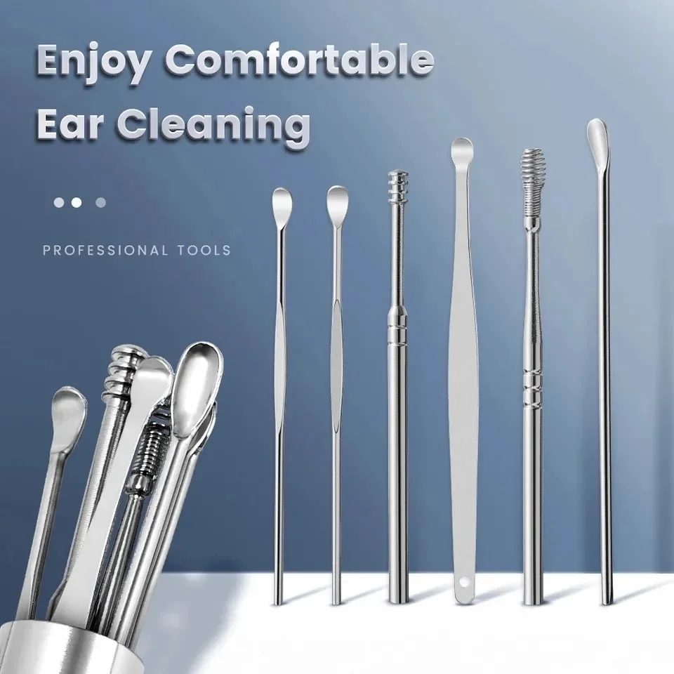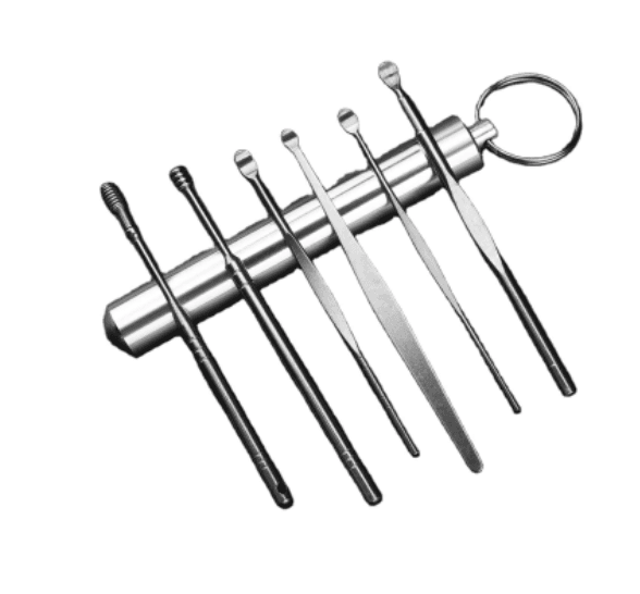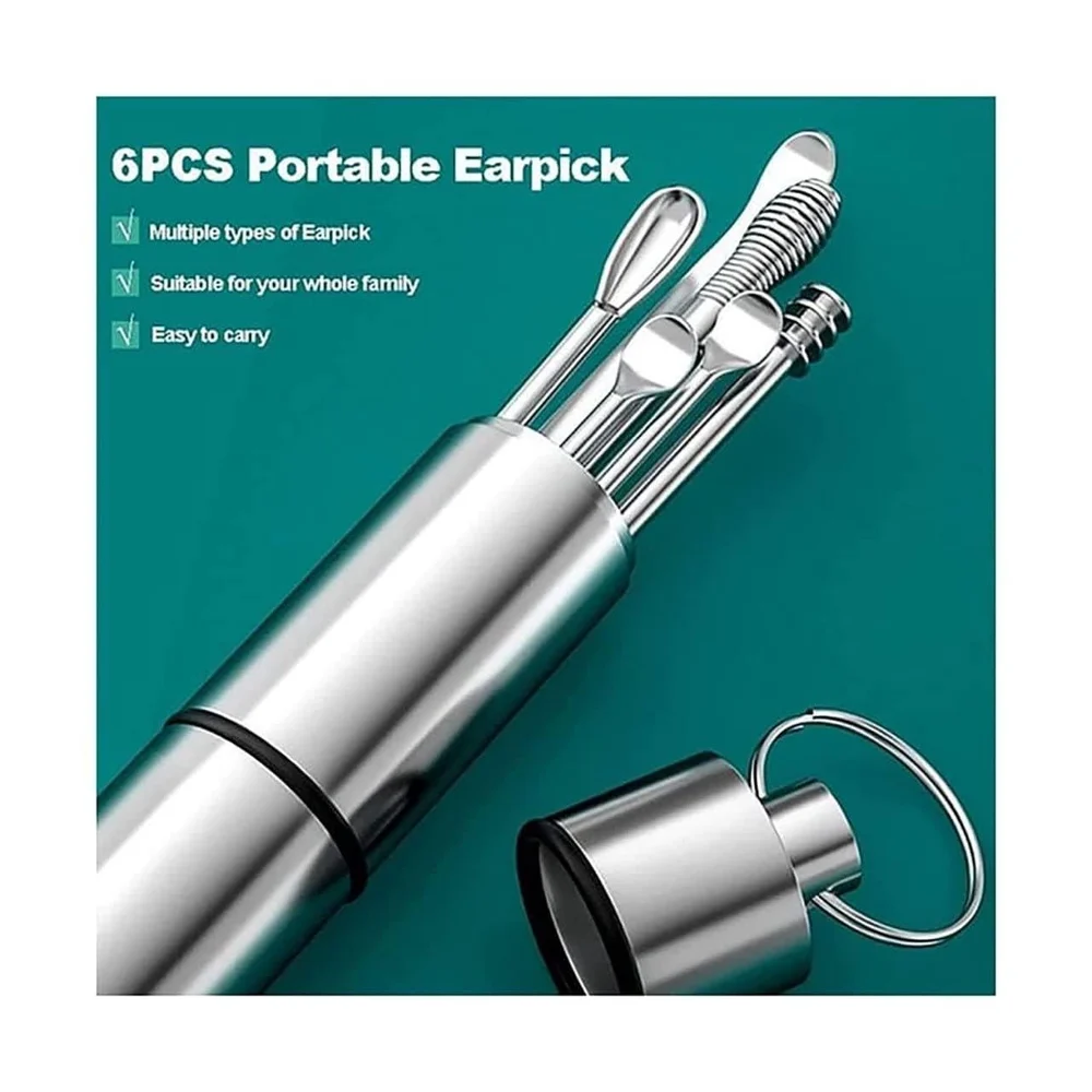 - 6-in-1 Ear Wax Cleaner: This reusable ear cleaner kit contains everything you need for efficient ear wax removal. It includes a variety of cleaning tools, an ear pick wax remover tool kit, and a spring ear buds cleaner, all housed in a sleek Stainless Steel Round Keychain box.
