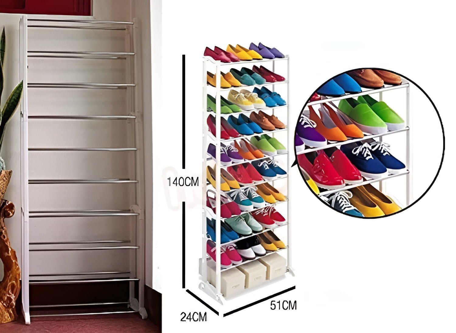 These clear Shoe Rack can be a good assistant for you. 10 shelf system Stores up to 30 pairs of shoes