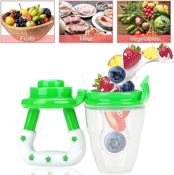 - Easy for babies to grasp. The silicone food feeder pacifier helps to encourage your child to self-feed, build independence, develop confidence, improve hand-eye coordination and fine motor skills.