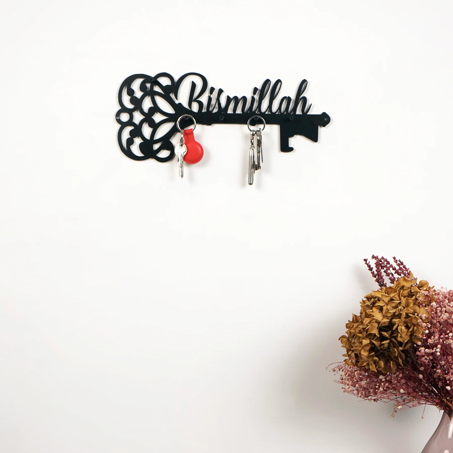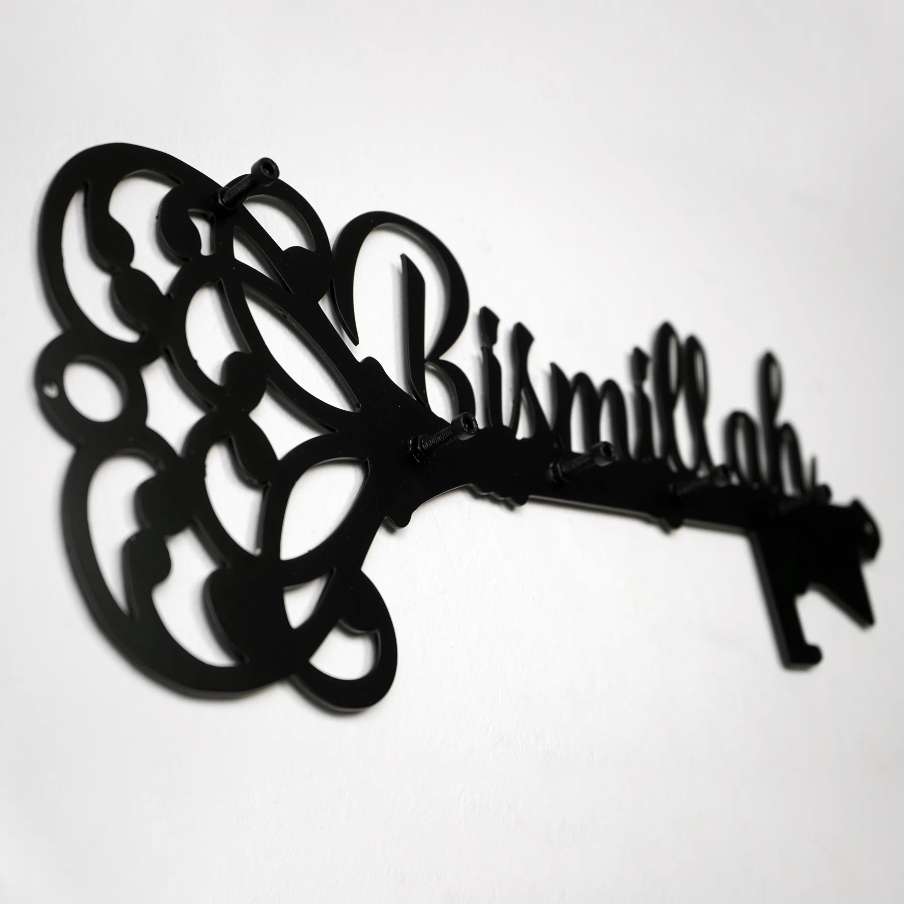 This piece elegantly marries Islamic calligraphy with practicality, embodying the phrase ‘In the name of Allah’ to bless your comings and goings. An essential addition to Islamic home decor, it not only organizes your space but also serves as a constant reminder of faith, making it a perfect Muslim gift and a meaningful piece of Islamic art and Quran wall art.