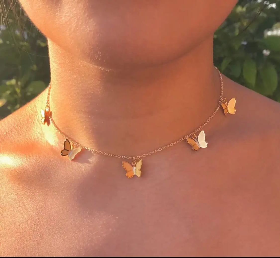 Butterfly Necklace | Gold Plated | Dainty Chain | Layering | Choker Necklace for Girls