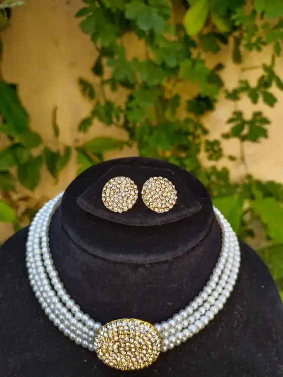 Classy & Trendy White Pearl With Stones Necklace Set For Girls & Woman