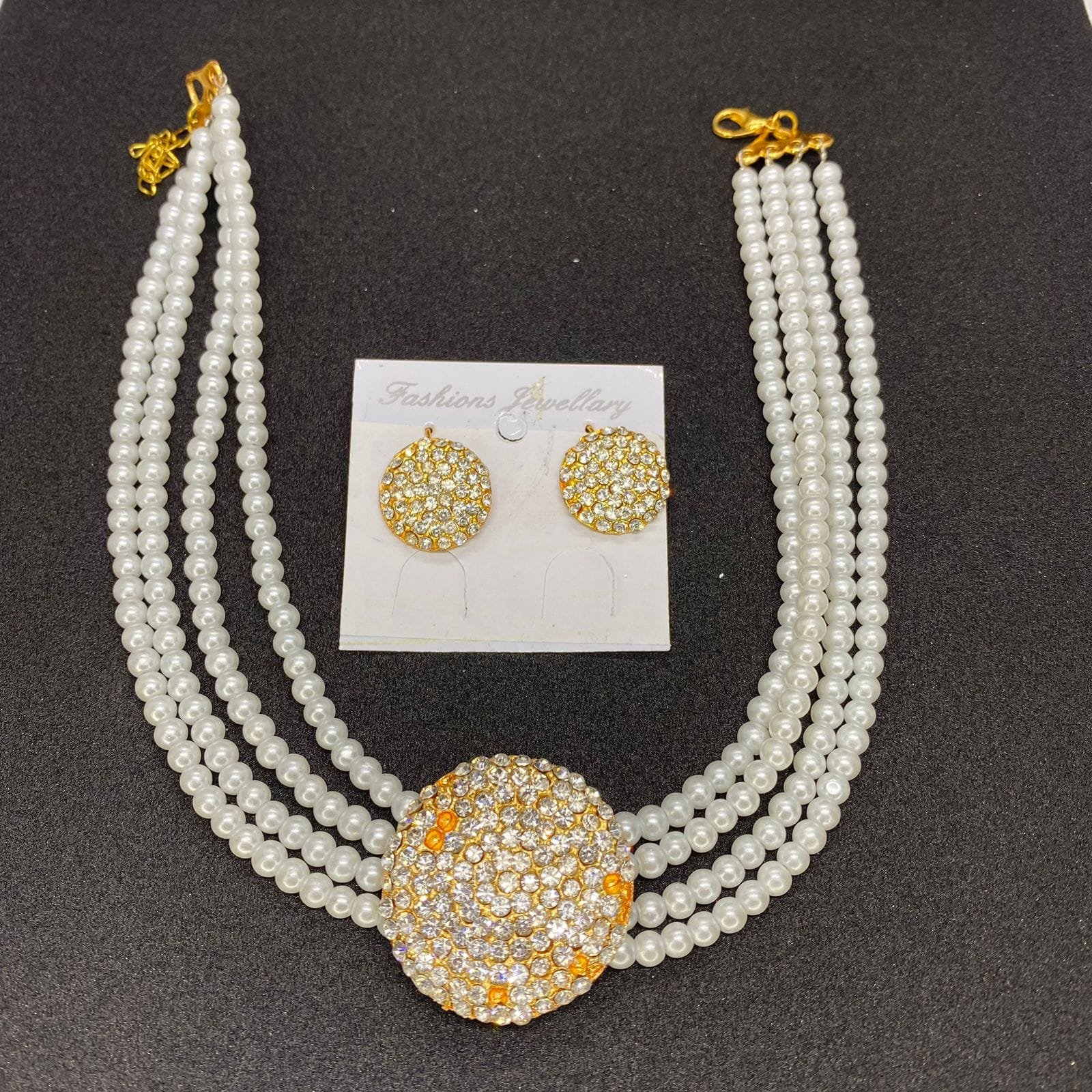 Be the first to review “Classy & Trendy White Pearl With Stones Necklace Set For Girls & Woman”
