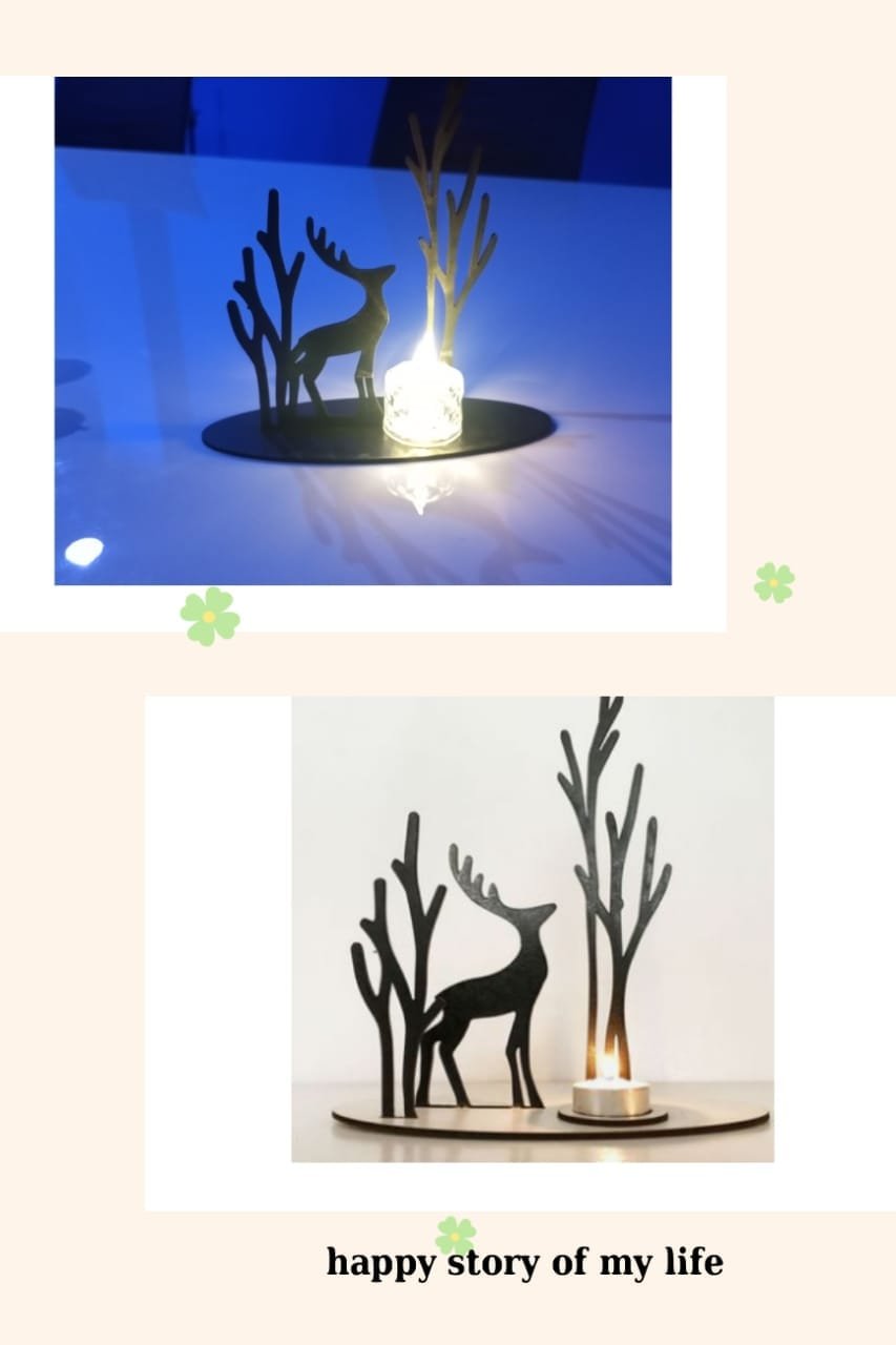 Deer candle holder Desktop decoration MDF wood material 7×7 inch size Black color Candle not included