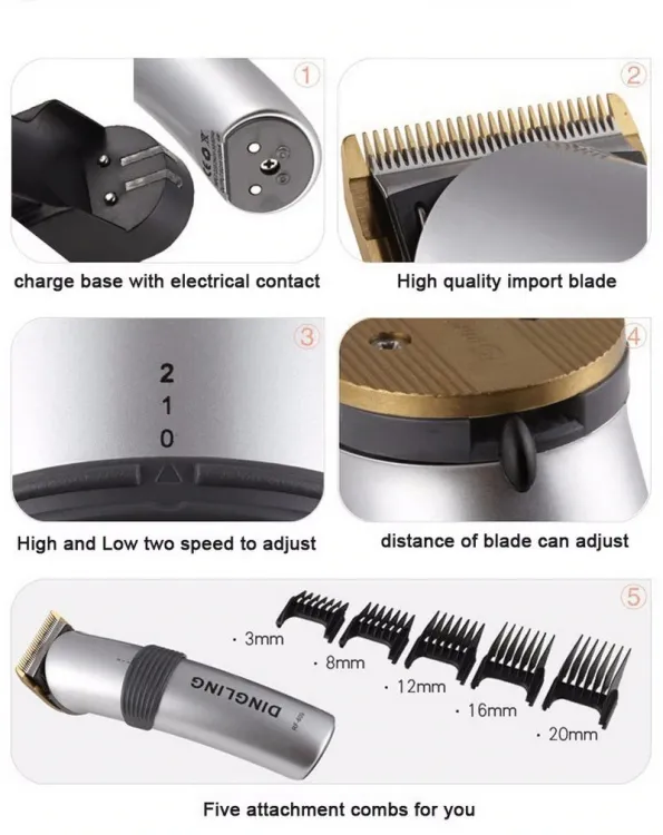This rechargeable hair clipper is designed for professional use to cut hairs and beards. The DENGLENG has been developed using the latest technology. It has been produced using the most modern machinery and all the functions have been thoroughly tested. We hope you will be fully satisfied with dengleng.