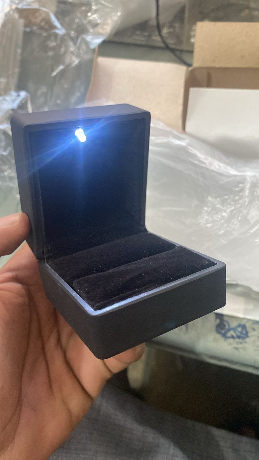 - SPOT LIGHT EFFECT: A small LED light installed inside the box, which can emit white light when you open the box, making jewelry more dazzling and showing the glittering rings at any time