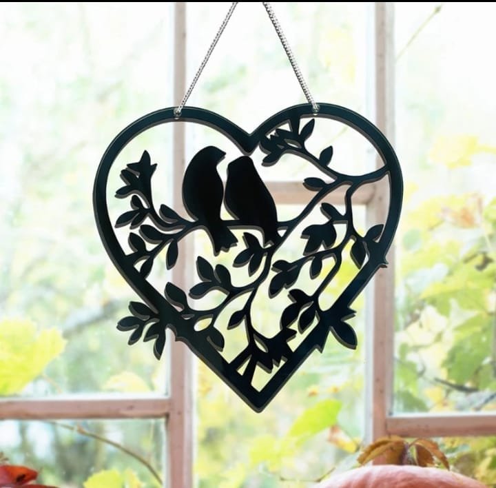 Love birds Wall hanging | Wall Art Decor | Door Sign | Home Decoration | Garden Ornament Stain | Glass Window Hanging Christmas