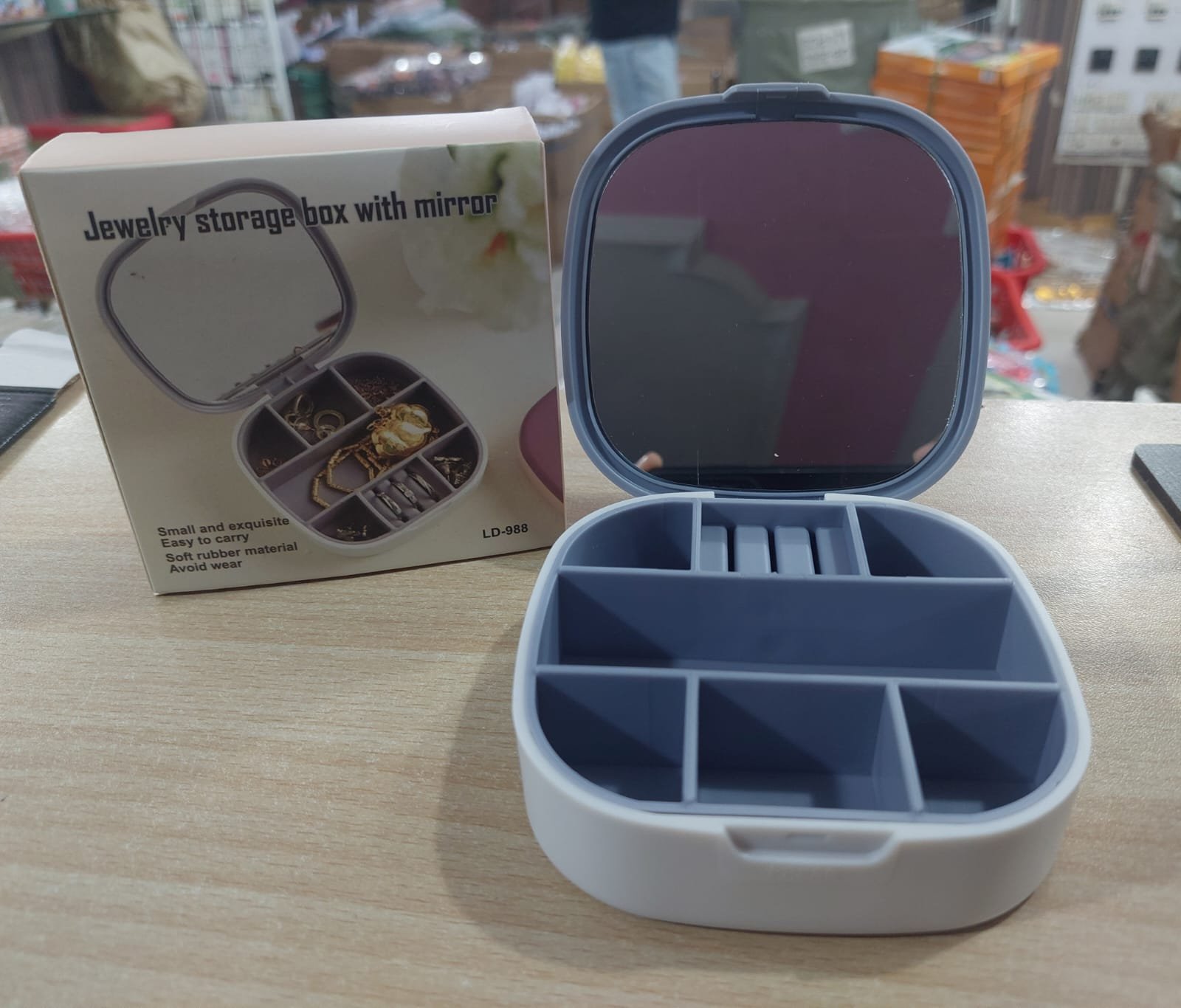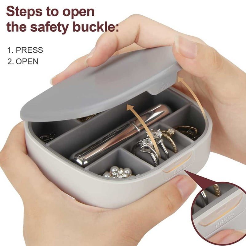 - Stylish Design: The Mini Portable Travel Cosmetic and Jewelry Storage Box Organizer with Mirror comes in a stylish and sleek design that looks great on any dressing table or bathroom counter.