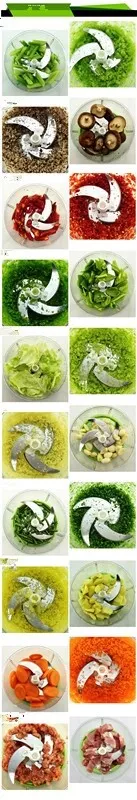 - Instantaneously shred various fruits and vegetables, such as cabbage, tomato, ginger, garlic and more
