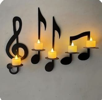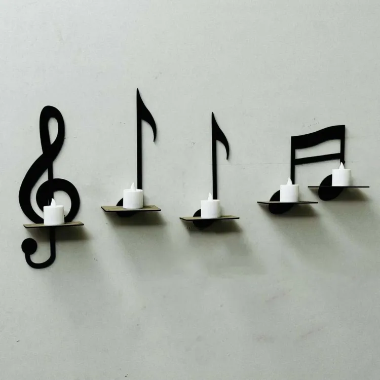 - Musical Instruments Wall Shelves, Comes as a set of 4 Pcs which is easy to install with Double Tape. Versatile Wall Decoration Items, cab be used as a candle or flower holder. Perfect for room decoration, adds a touch of modernity to your space. Perfect way to spice up your dull walls.