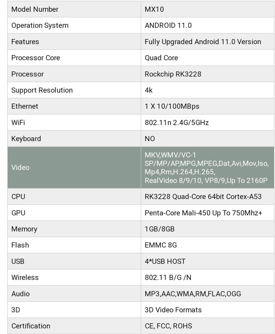 - Processor: Rockchip RK3228