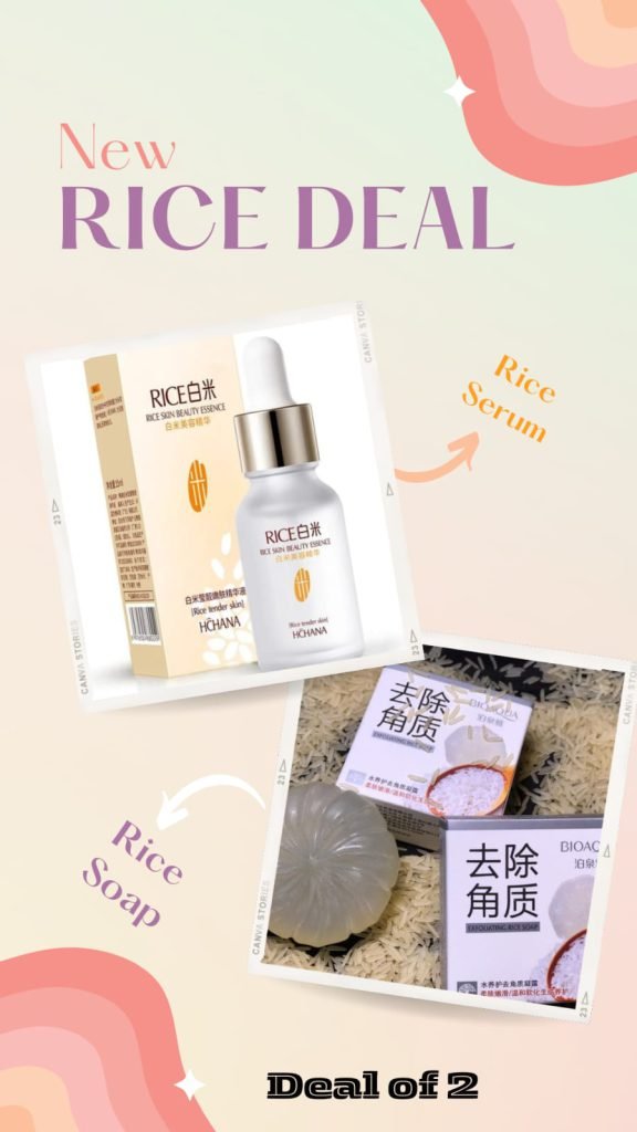 Indulge in the ultimate skincare experience with our exclusive Rice Radiance Duo: Deal 2! Elevate your beauty routine and unveil a natural glow that radiates from within. Our specially crafted Rice Serum and Rice Soap work in harmony to bring out the best in your skin.