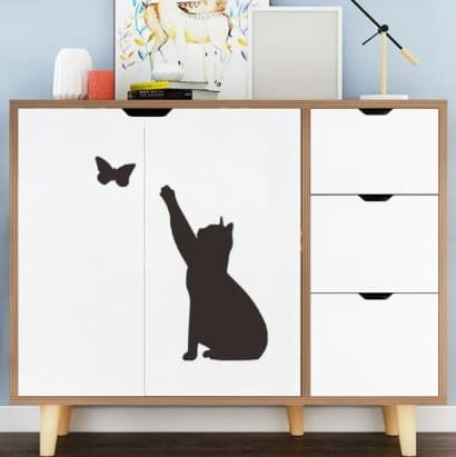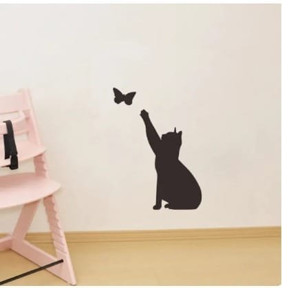 • Adorable kitten and butterfly wall sticker for home decor.