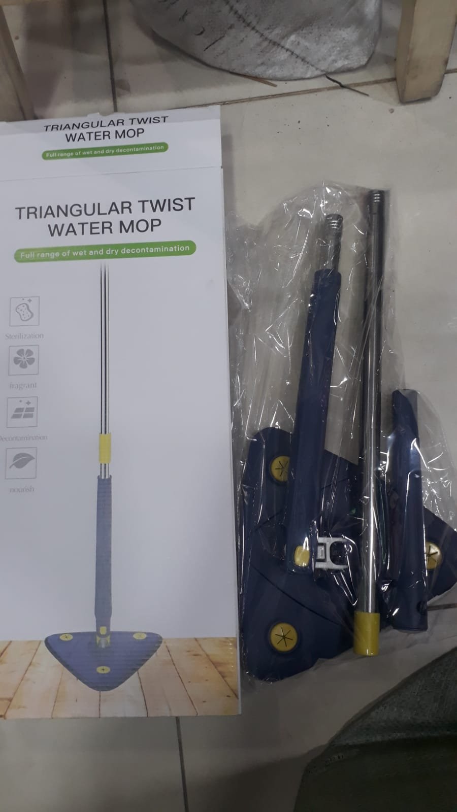 - Make Clean Easier The cleaning tray adopts the latest type of triangular design, 360° rotating mop head allows you to leave no dust in the dead corner, easily solve your stubborn dust in the corner of the wall, ceiling and window. Say no to danger Extra-long 1.3m pole to easily reach dust locations and help you eliminate dust in a simpler way. Premium Material The mop is equipped with thickened and encrypted microfiber mop cloth, which can quickly absorb water within 5 seconds and has superb adsorption ability, firmly locking in the dust. Protect your hands Mimic hand washing cleaning design, integrated push-pull automatic water squeezing function, free your hands Size: 130cm x 27cm.MaterialPP/ Reinforced stainless steel Package Included:1* mop (Extended section) + 1 piece of cloth