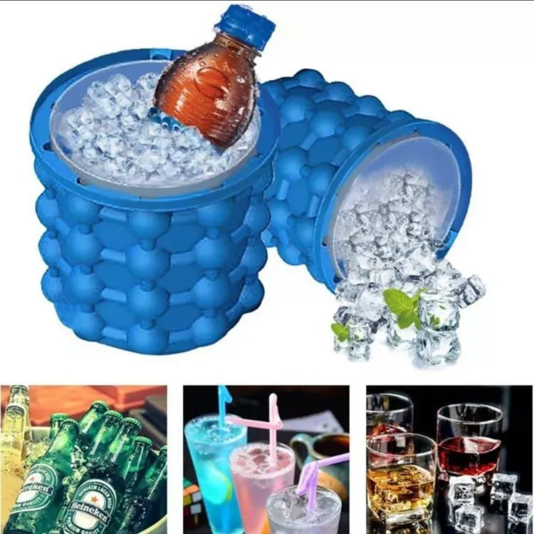New Magic Ice Cube Maker Genie Silicone – Ice Bucket The Revolutionary Space Saving Ice Cube Maker – Blue