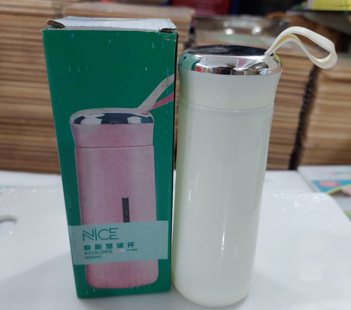 Nice Glass Bottle Water Mini Flask Bottle with vaccum flask and loop Temperature Resistant, For Hot & Cold Water, Milk, Lassi, Juice,Smoothie, Detox water 400ml (Random Colors)