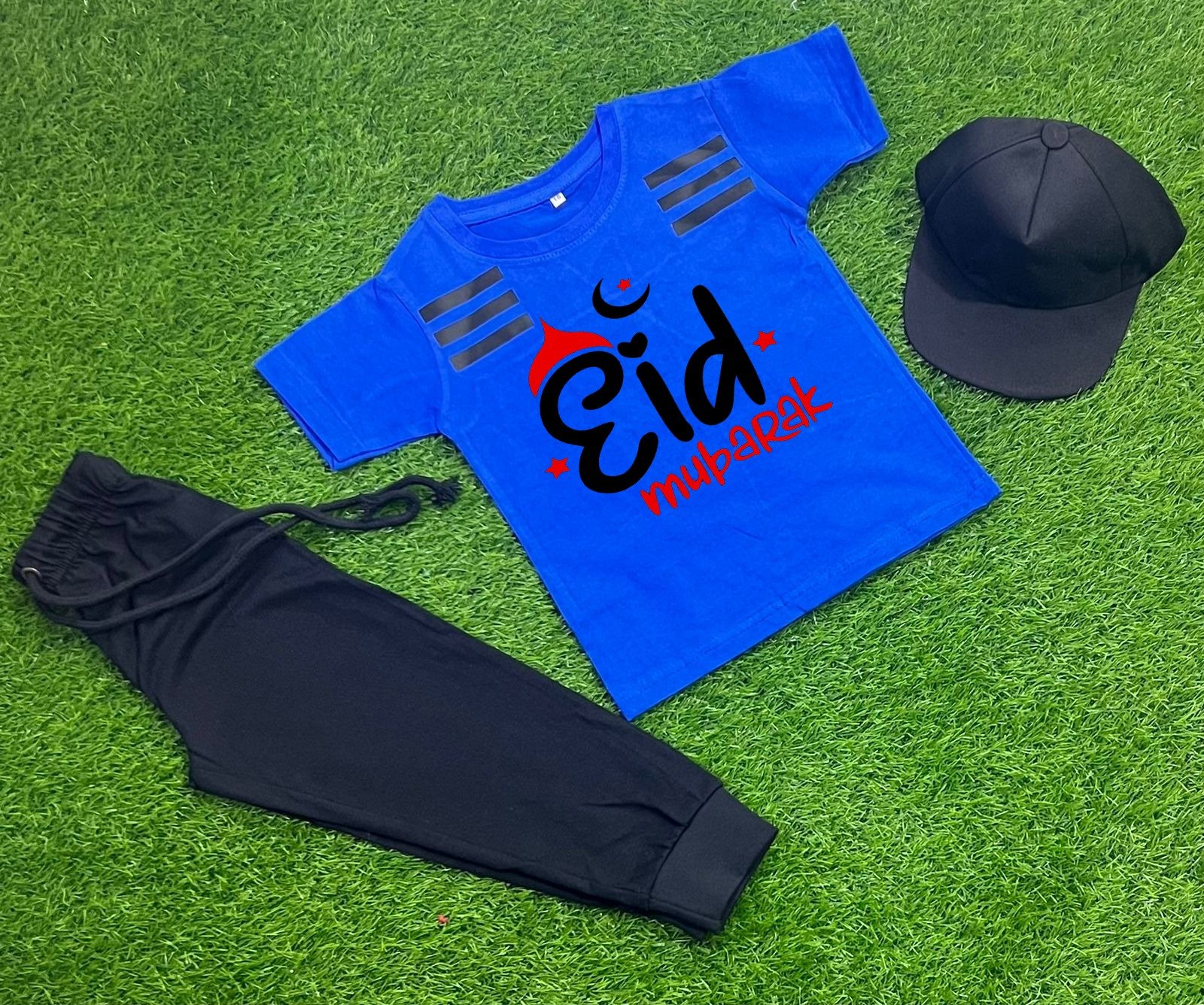 Pack Of 3 Eid Mubarak Royal Blue Trakcsuite For Kid