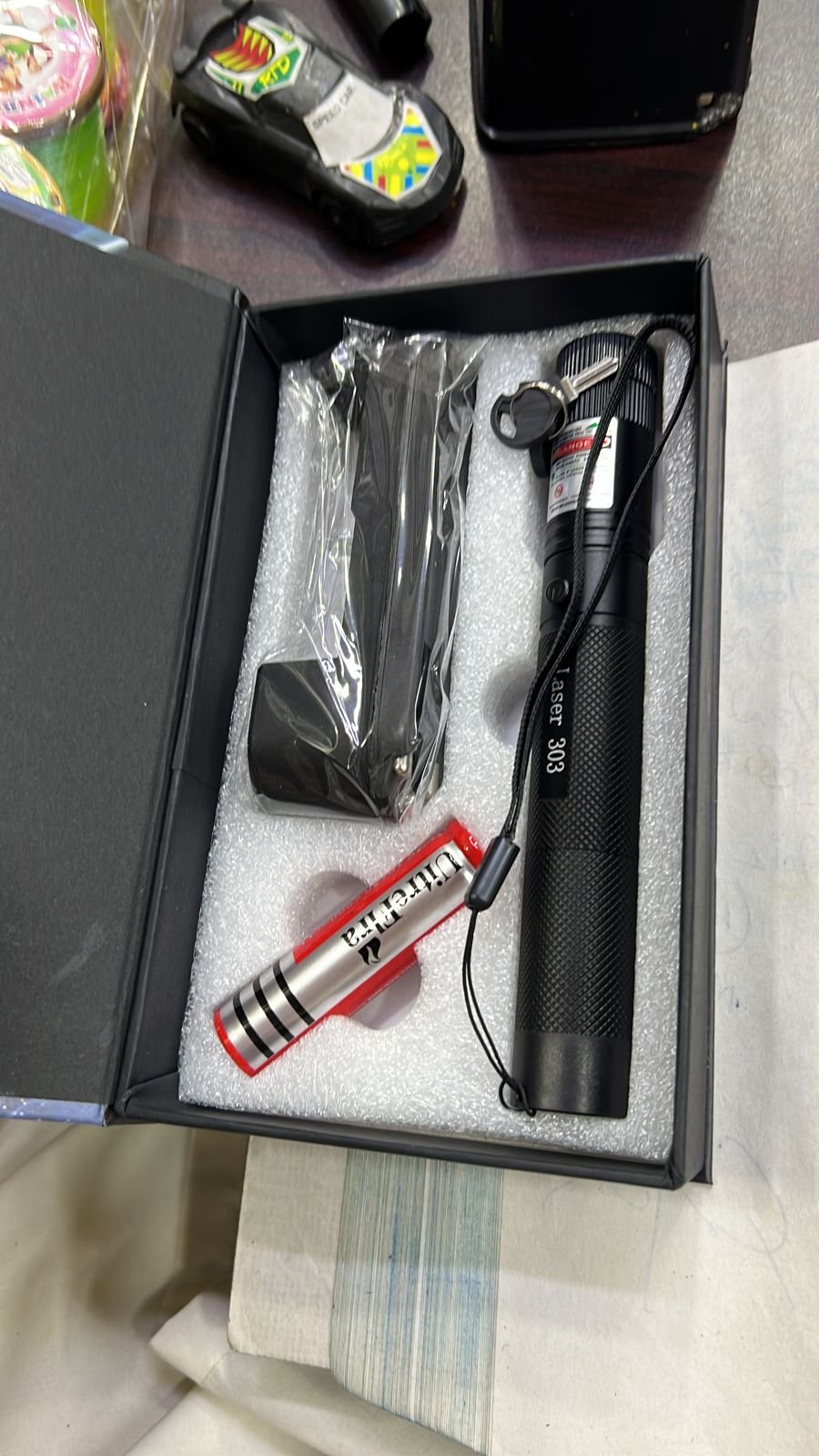 Green Laser Pointer for Presentation II Multi shape Adjustable Disco Laser Lights II Laser Beam with Safety Locks and (532 nm, Green) .It is compact in size and light weighted product. Extremely bright green 532nm wavelength. Built in improved diode and made by super bright Laser Light technology. Body Color: Black. Laser color: Green. Body Material: Aluminum alloy. Light Style: Beam light. Output Wave: Continuous wave. Super laser pointer, wonderful gift Cautions: Avoid direct eye exposure to laser beam. Friendly reminder: The laser is high power so it runs out of battery quickly
