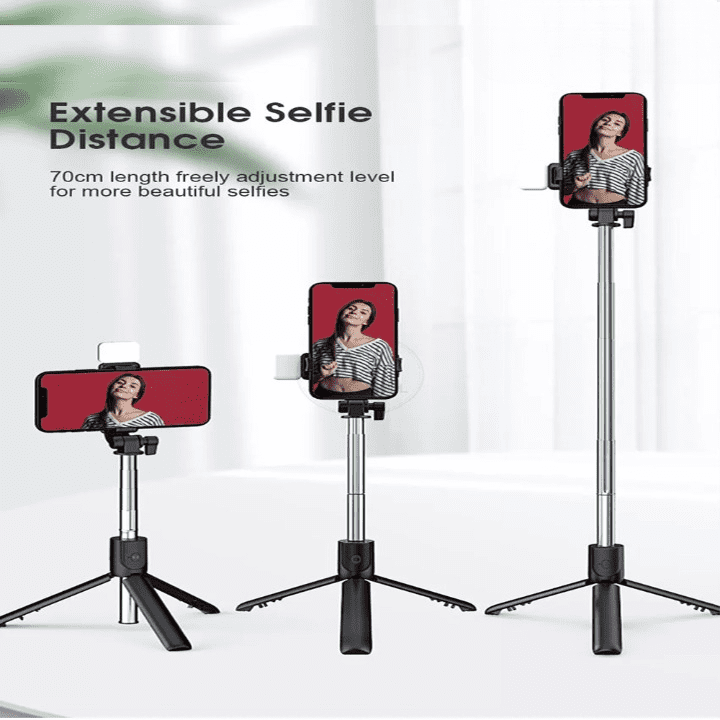 - Selfie Stick With LED Light Wireless Bluetooth Foldable Mini Tripod Stand Mobile Holder With Fill Light Shutter Remote Control For IOS Android – Black
