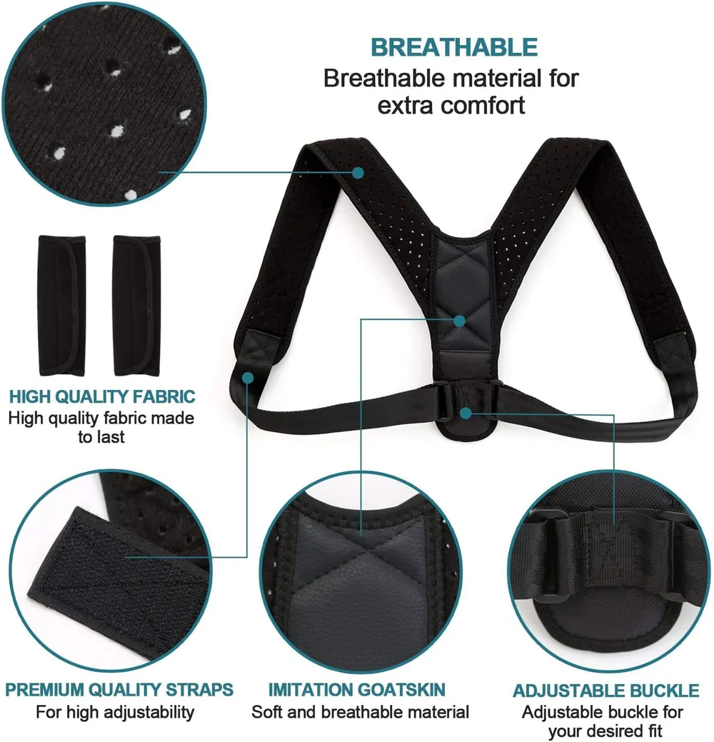 - Adjustable straps and braces provide support to the shoulders, encouraging a straight and upright posture.