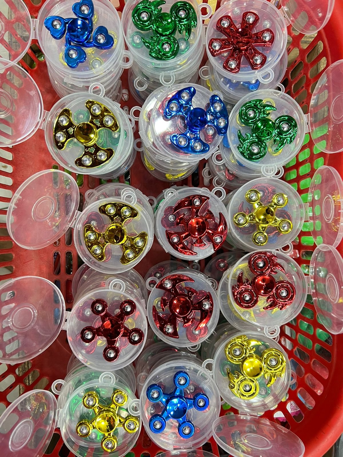 • Multicolor Metal Fidget Spinner – Small Pack of 1 (Random Designs & Colors) Experience endless fun and stress relief with our Multicolor Metal Fidget Spinner! Perfect for kids and adults alike, this compact spinner offers a mesmerizing spinning experience in a variety of random designs and vibrant colors.