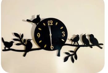 A Beautiful Combination of Sparrows, Tree Branch, and a Clock. Beautiful Big Black wall clock is nested between tree branches with sparrows on it which will produce an eye-catching scene for the viewers. Elegant & Attractive art will add more beauty to your wall and home. It’s not just a wall clock but a complete set of decoration pieces for your home, living room or bedroom, etc.