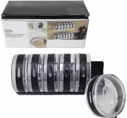 Cylindrical Spice Rack By Umbra Offers A Unique, Customization Storage Solution For Spices. Six Disk-Shaped Containers Sit In A Rack That Can Be Placed In A Drawer Or On A Counter Or Shelf, Or Mounted To The Wall. Each Container Features Two Dispensing Options (Sift And Pour). Slide The Outer Band To Select Dispensing Method. Unscrew To Clean And Refill. :: Package Contant :: 6 Pcs X Black Cylinder Spice Rack Seasonings Set Of 6 Tray Kitchen Chef