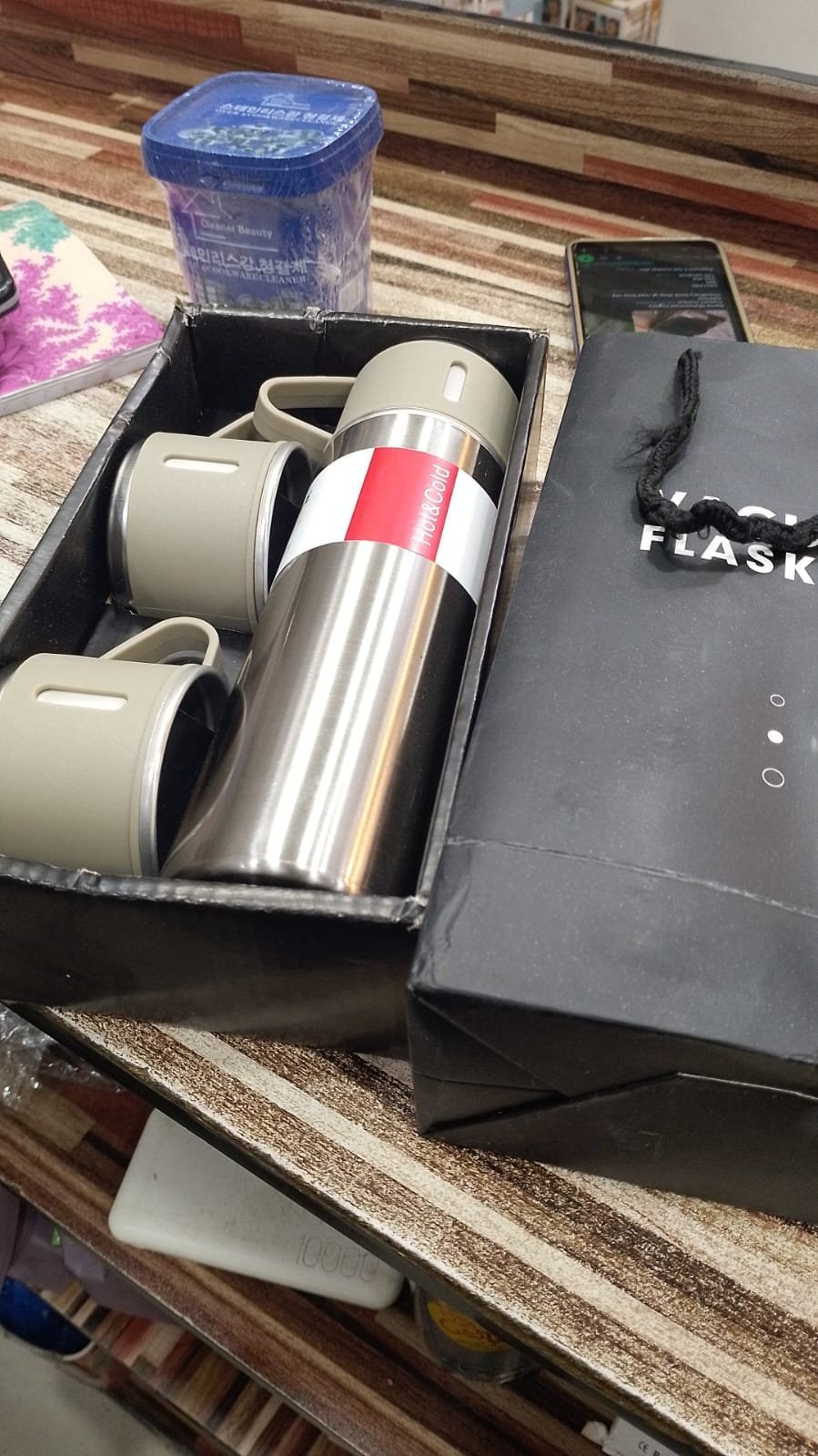 Made of food-grade stainless steel, the Stainless Steel Vacuum Flask Set, 500ml with 2cups is durable and easy to clean. it can be used for a long time.