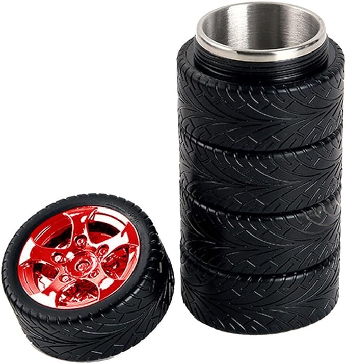 - This stainless steel mug is a must for anyone who loves unique and creative designs. The shape of a car tyre gives everyone a personal touch and makes it the perfect gift for any car lover.
