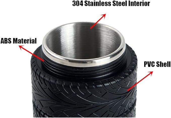 - This mug is both stylish and practical with its creative car tyre design and the stainless steel material. Perfect for keeping your hot or cold, it is the ideal companion for any outdoor adventure.