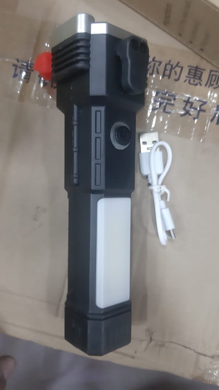 USB Charging Super Bright LED Flashlight With Safety Hammer Side Light Torch Portable Work Lights Outdoor Adventure Lighting