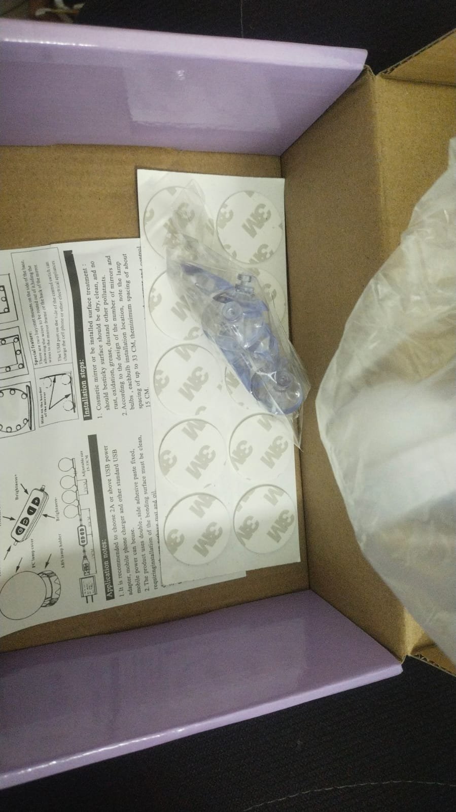 - Easy To Install & Different Power Supply Modes – LED vanity mirror light come with strong adhesion PC double-sided can easily stick it directly on the mirror, mirror frame or wall quickly, no tools required. This mirror lights has a high quality suction base, with wide contact surface and 3M double-sided tape never fall off easily. USB power supply, flexible power supply, including charging with phone power adapter, laptop.
