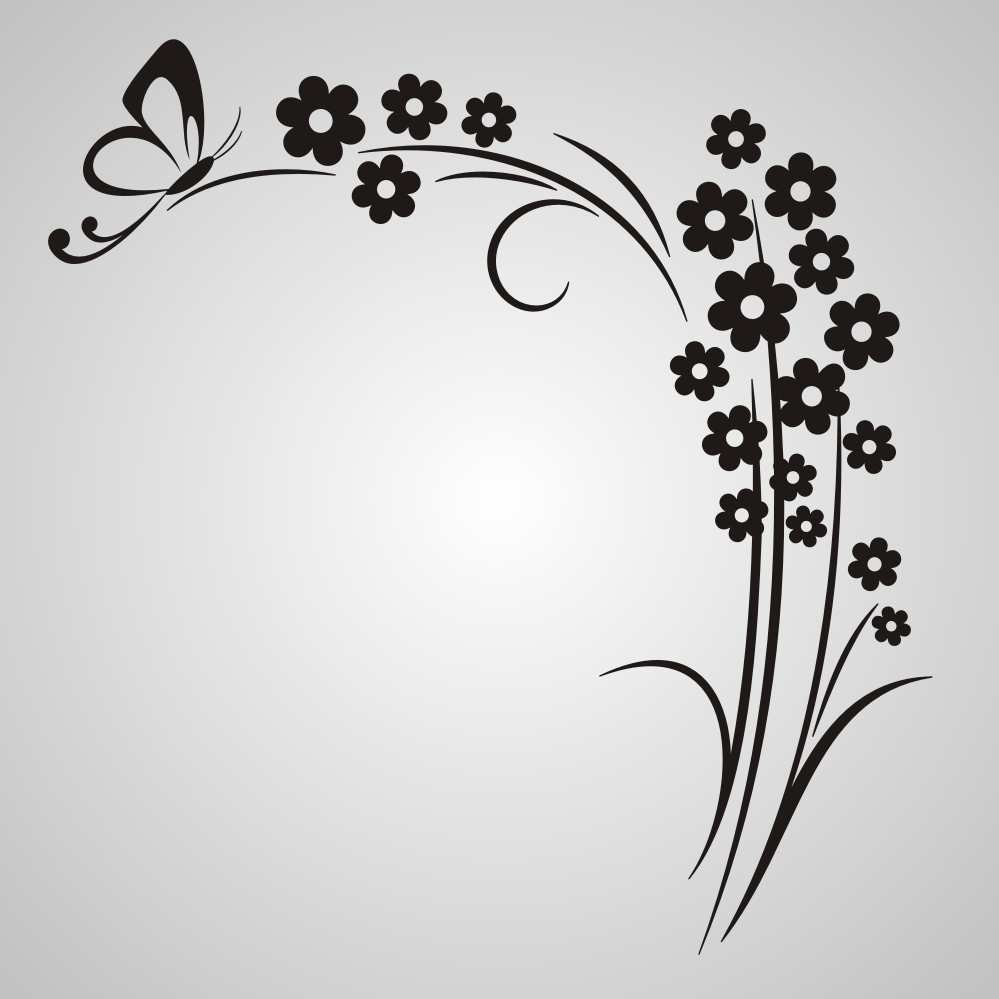 Wooden Flowers With Butterfly Corner Ornament Wall Sticker